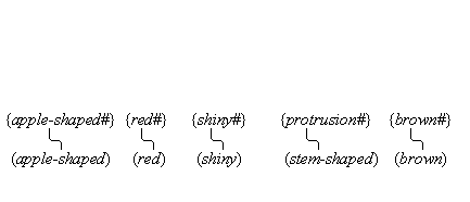 red)," are arbitrary labels used to refer to neural nodes. We could have used labels such as "node 5731" instead. We use the given labels as a heuristic device to suggest to the reader which neural nodes are being referred to in our discussion. The cognitive system, of course, accesses neural nodes directly through their